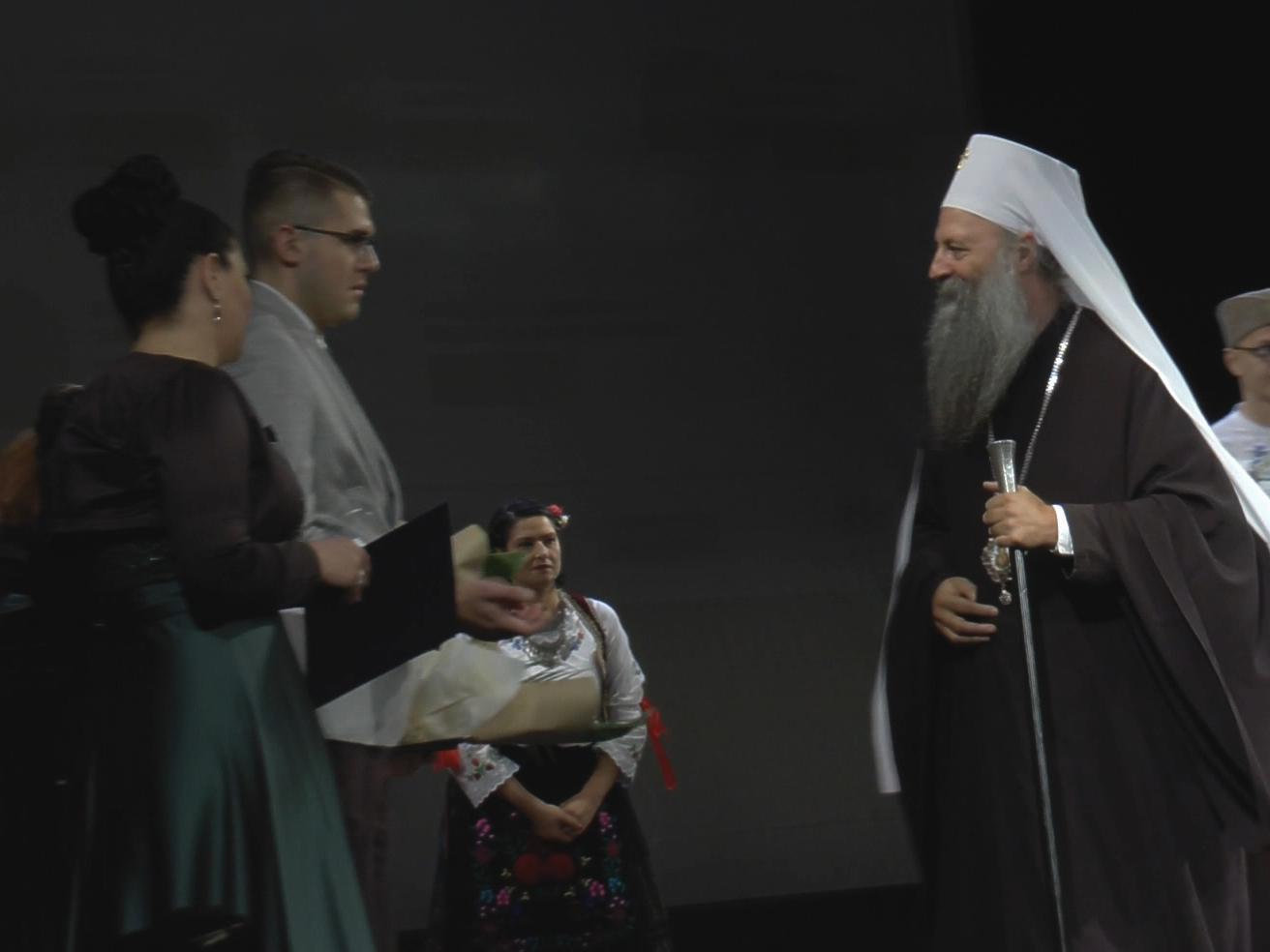 Gromoglasnim aplauzom pozdravljen je srpski patrijarh Porfirije kome je uručeno specijalno priznanje, Plaketa mira, zbog njegovog humanitarnog rada i motivisanja mladih.