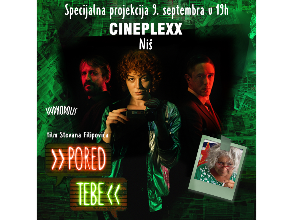 Specijalna projekcija filma ,,Pored tebe“ sa posetom glumačke i autorske ekipe filma, zakazana je za subotu, 9. septembar od 19 časova, najavljeno je iz Cineplexx Niš bioskopa.