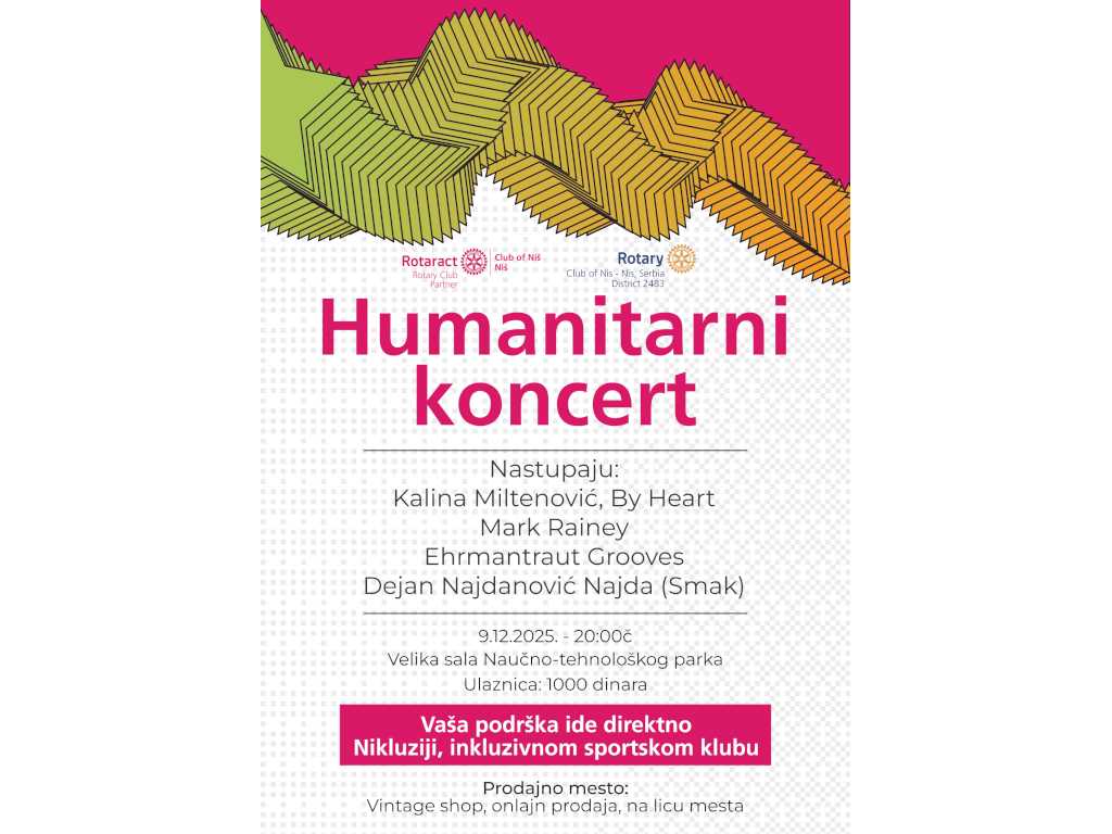 Cena ulaznice iznosi 1.000 RSD. Karte se mogu kupiti u Vintage Shop-u u Davidovoj ulici, online putem mejla rotaractclubnis@gmail.com, kao i na ulazu u salu na dan događaja.
