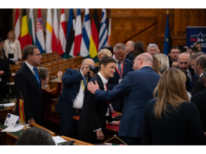 Predsednica Skupštine Srbije Ana Brnabić, koja u Budimpešti učestvuje na Konferenciji predsednika parlamenata Evropske unije (EU), izrazila je danas...