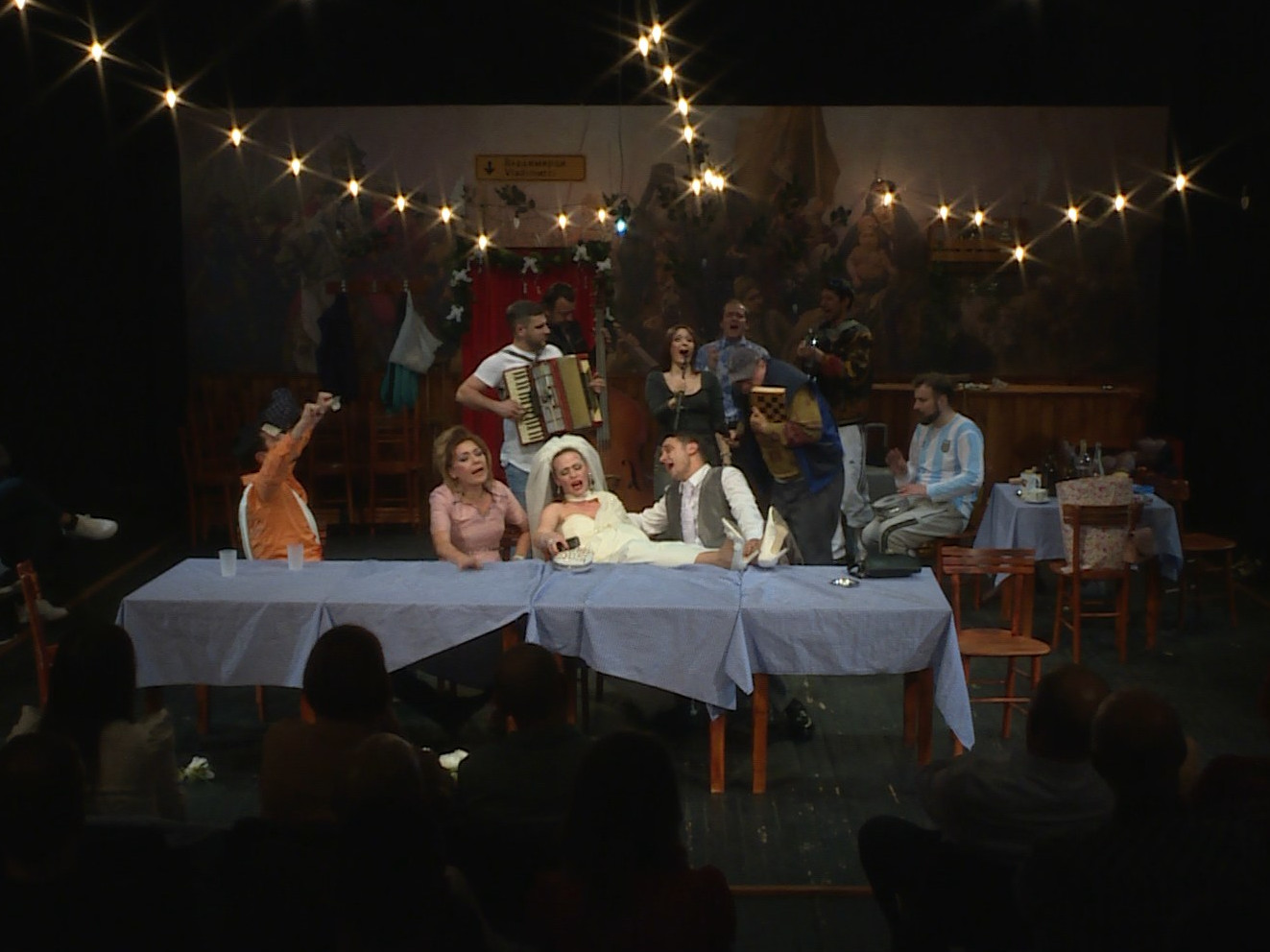 - Samo na prvi pogled, scenografija Marije Kalabić je realističkog, čak naturalističkog smera. Suštinski, rasporedom u prostoru pojedinih bitnih elemenata, te nekim detaljima, ona boji atmosferu neke nadrealne krčme.