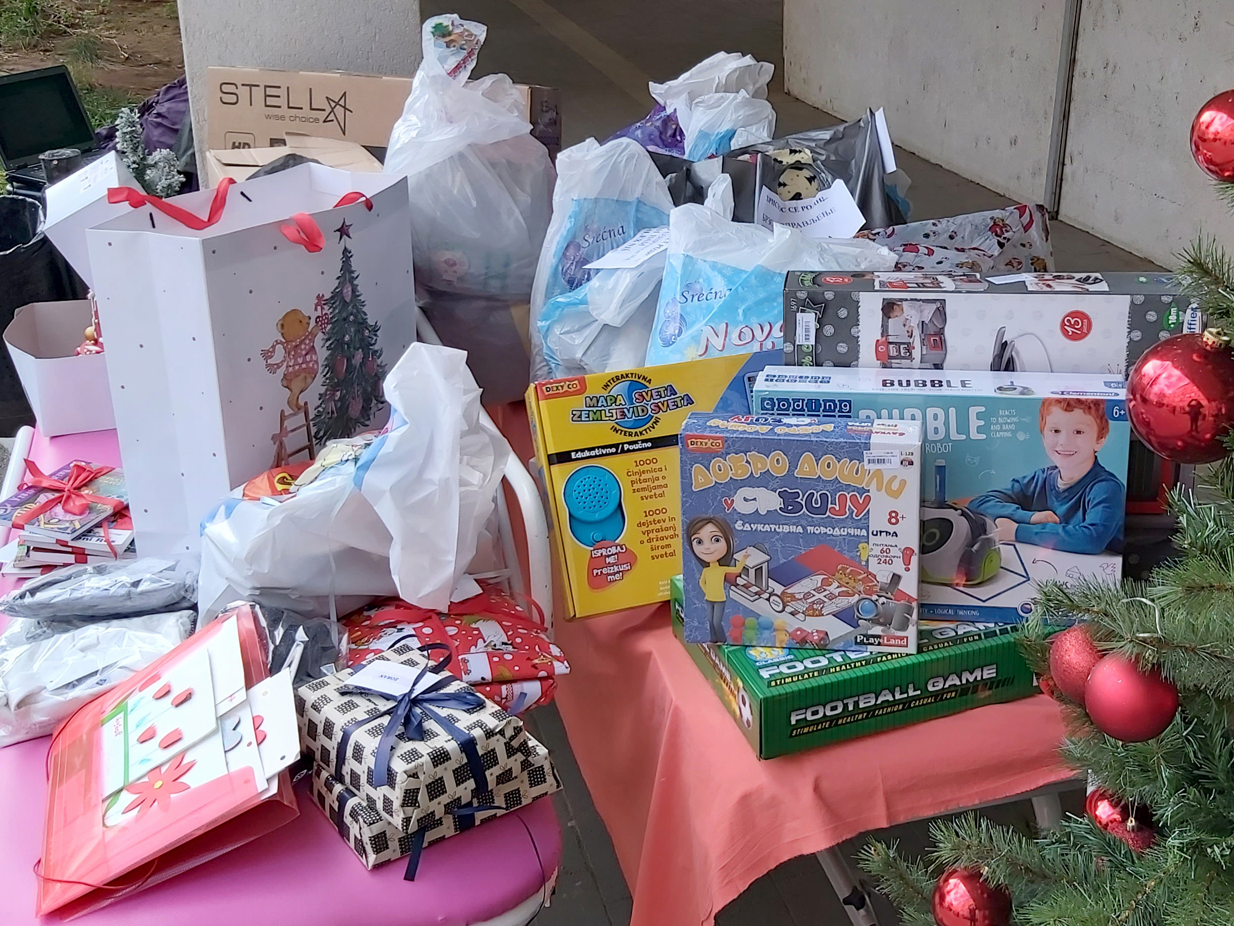 Dva lap topa, televizor, edukativne igračke, knjige na srpskom i engleskom, garderoba, velika okićena novogodišnja jelka, posuđe za kuhinju Dečje onkologije, torta i ketering sa slatkim i slanim pecivom, pokloni su kojima smo obradovali naše najveće heroje, kažu u Edukacionom forum centru.