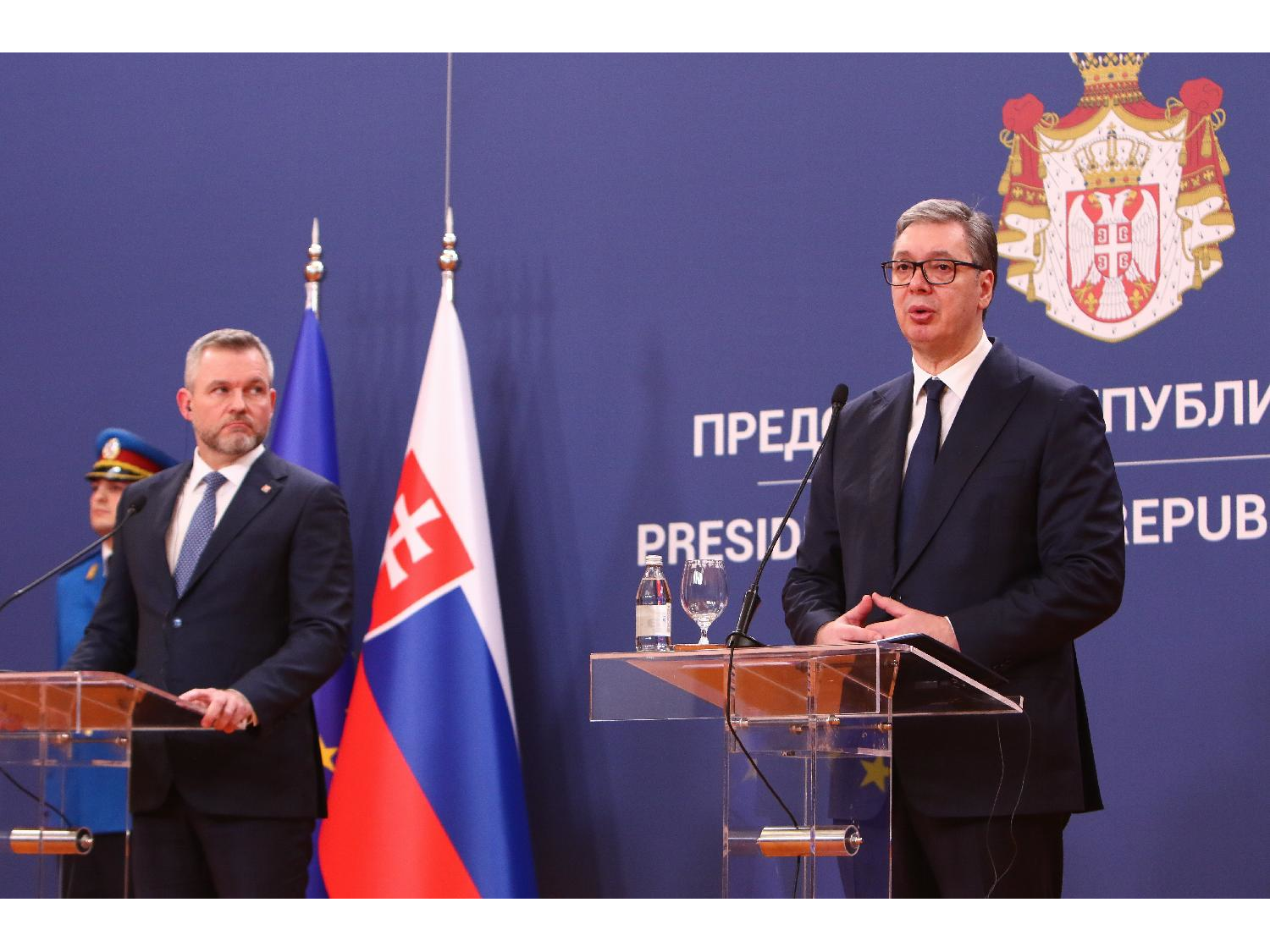 Govoreći o evropskim integracijama Srbije, Vučić je zahvalio Pelegriniju i slovačkom premijeru Robertu Ficu na doslednoj, neskrivenoj i snažnoj podršci koju pružaju Beogradu u tom procesu, kao i na poštovanju terotorijalnog integriteta i suvereniteta.