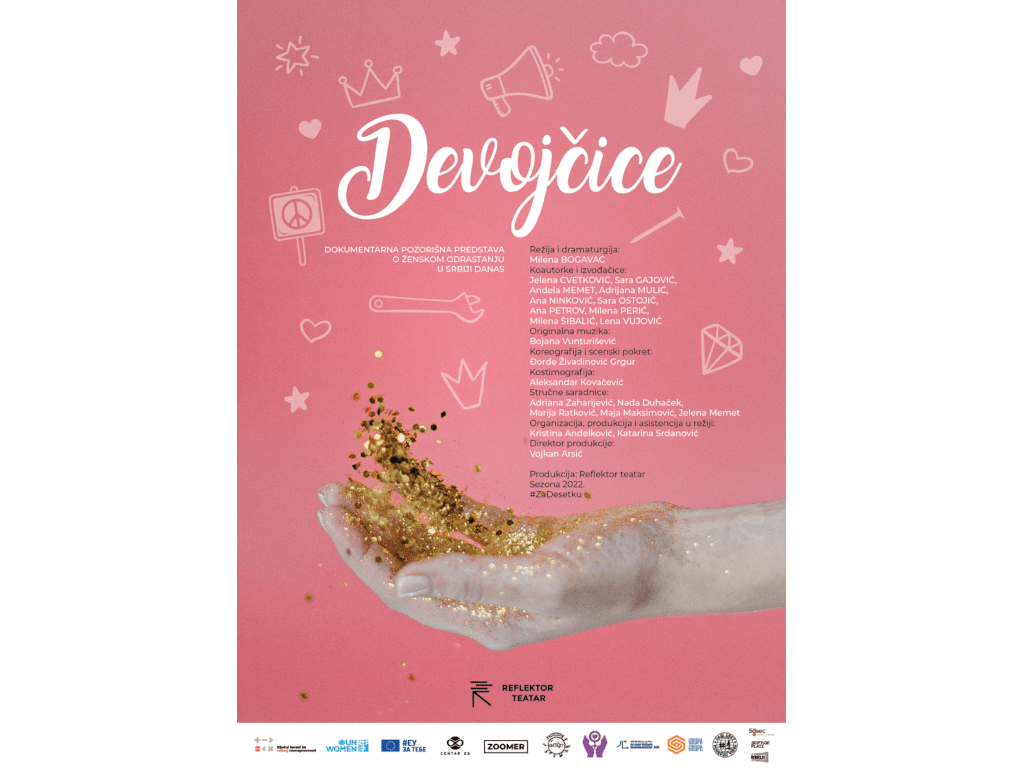 Predstava „Devojčice" je dokumentarna pozorišna predstava o ženskom odrastanju u Srbiji danas. Dramaturgiju i režiju potpisuje Minja Bogavac, dok su koautorke i izvođačice: Jelena Cvetković, Sara Gajović, Anđela Memet, Adrijana Mulić, Ana Ninković, Sara Ostojić, Ana Petrov, Milena Perić, Milena Šibalić i Lena Vujović.