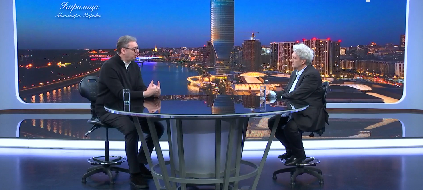 Vučić je na televiziji Prva, u emisiji "Ćirilica", ponovio da je skup u Novom Sadu povodom godišnjice pogibije 16 ljudi u padu nadstrešnice na Železničkoj stanici u Novom Sadu doživeo debakl i istakao da su posle "propalog skupa" došli u Beograd i iz "čista mira" napali ljude u Pionirskom parku, a napadnuto je i sedam prostorija Srpske napredne stranke u Srbiji.