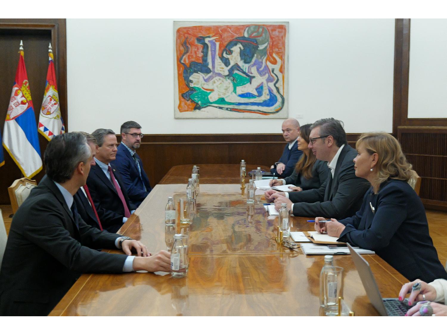 "U sadržajnom i otvorenom razgovoru, izrazili smo spremnost da dodatno jačamo veze i sveukupnu saradnju između Srbije i Sjedinjenih Američkih Država, kao i da nastavimo dijalog po svim pitanjima od obostranog interesa", rekao je Vučić.