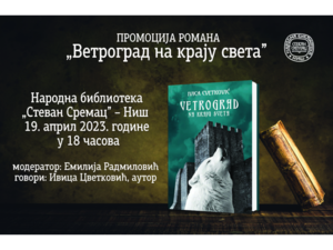 U sredu 19. aprila 2023. godine sa početkom u 18 sati, u Narodnoj biblioteci „Stevan Sremac" biće predstavljen roman Ivice Cvetkovića „Vetrograd na...
